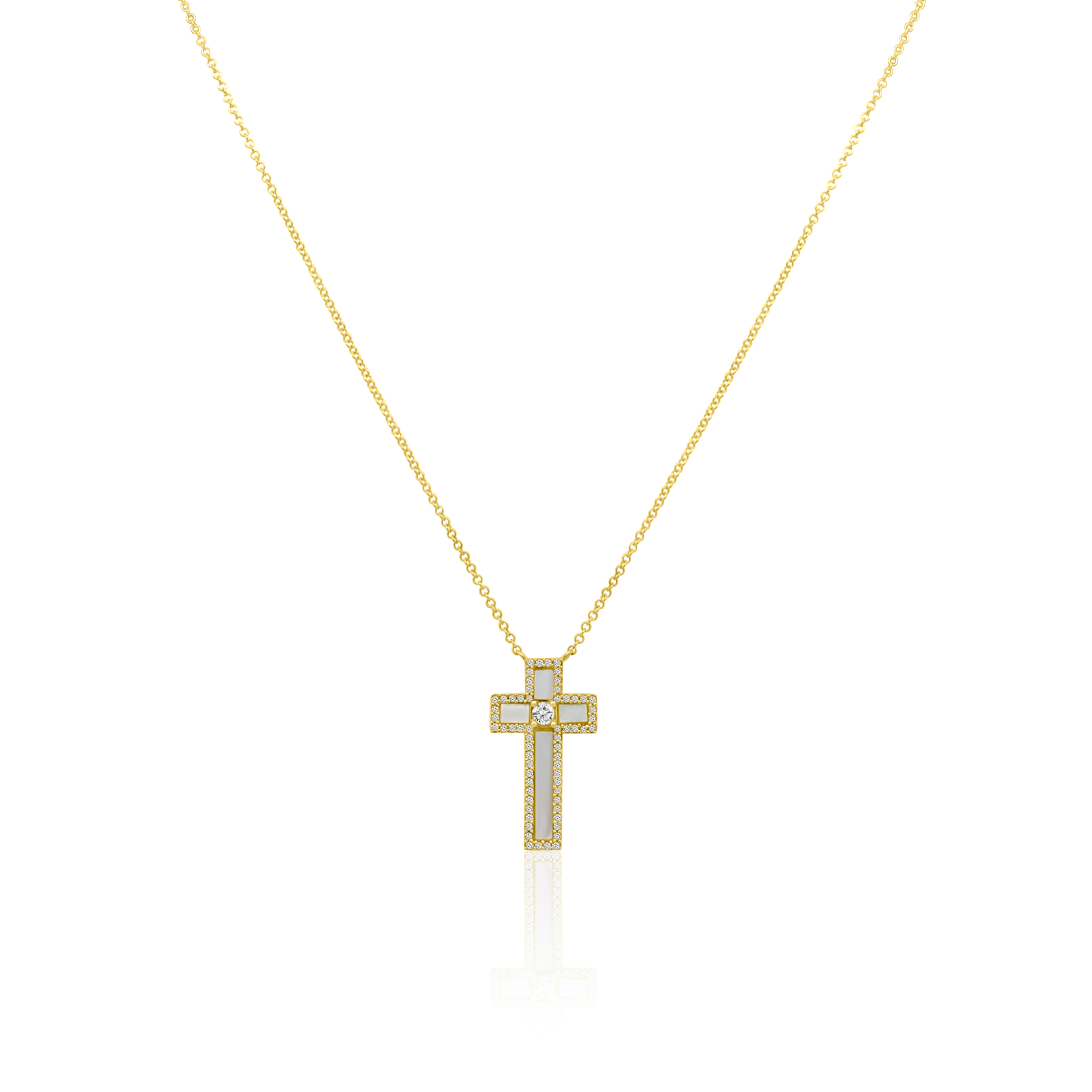 Our 14kt gold Lustrous Grace Cross Necklace features delicate mother of pearl inlay surrounded by pave daimonds. This refined piece invites mindfulness and grace into each moment. Super lightweight and easy to wear solo or stack with your other favorites.
